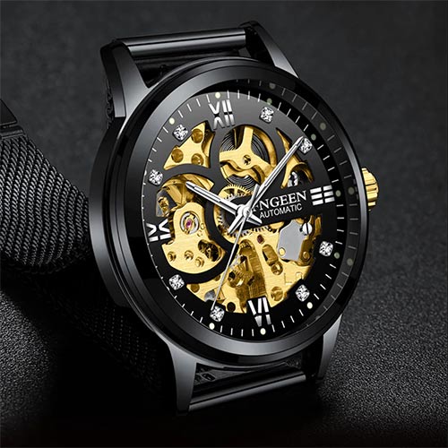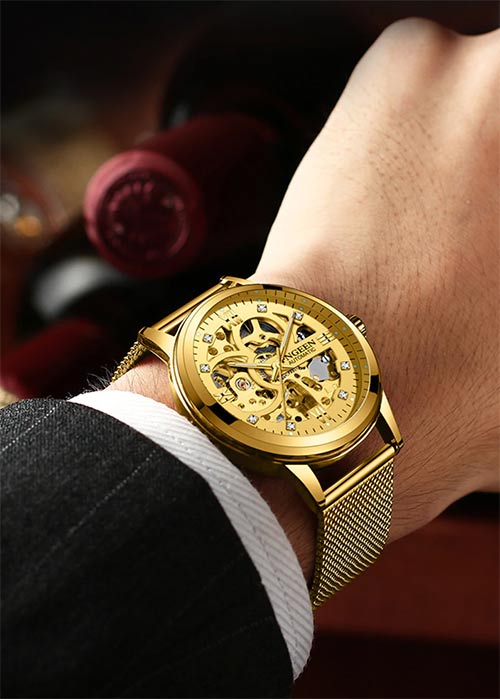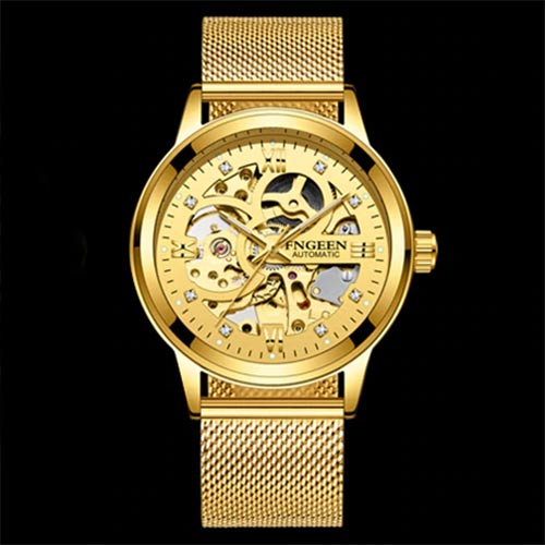 skeleton automatic mechanical watch gold net skeleton automatic watch gold belt