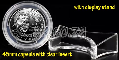 Plastic Coin Capsule Holder for coins less than 27mm in diameter and Mandela R5 bimetal coins