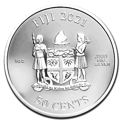 Obverse: Features the Fiji coat of arms, year, Silver weight and purity along with face value.
