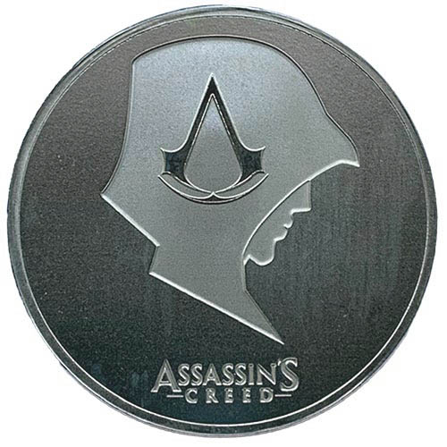 Obverse: Depicts a hooded assassin with the iconic logo in the center and the title of the game, "Assassin's Creed®" above.