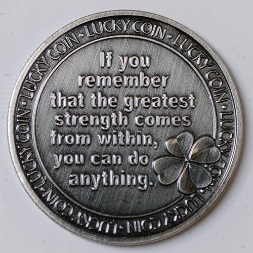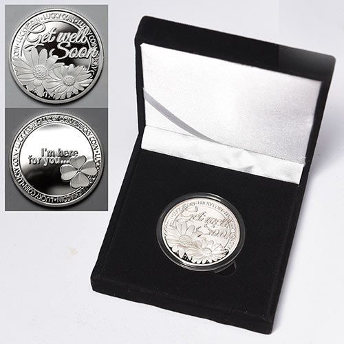 Good Luck Medallion in gun metal finish in black velvet presentation box for matric; exams or any new venture such as new job, new journey, etc.