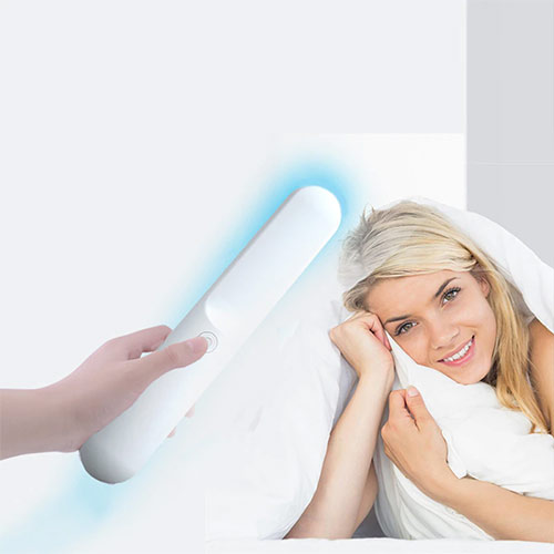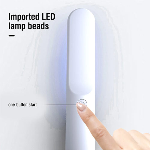 With built-in automatic safety switch, when the lamp tube of the germicidal stick is facing upwards in the working state, the UV lamp is automatically turned off. To restore to the working state, just rotate the lamp of the germicidal stick to face down.