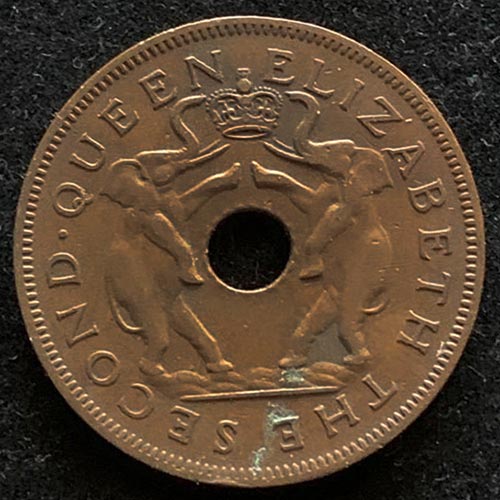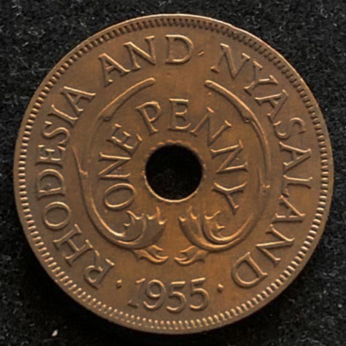 1955 Rhodesia Elizabeth II One penny rarest and first of the series