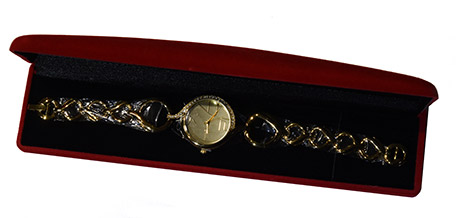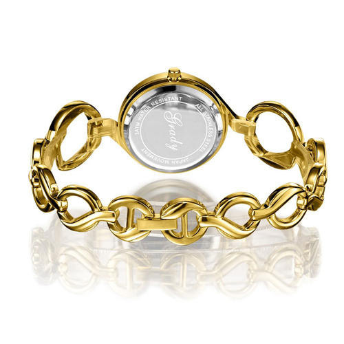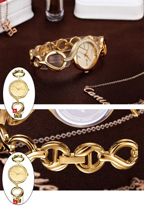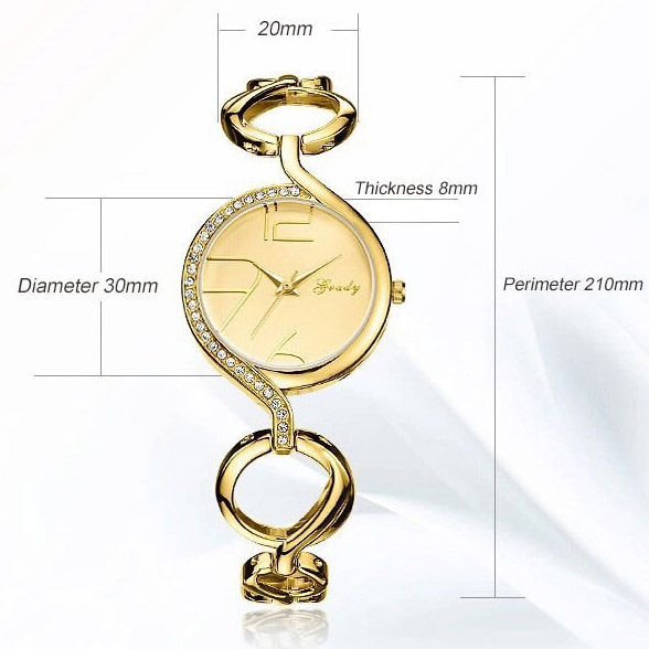 Grady women's fashionable stainless steel back golden watch with cubic zirconium stones and velvet case