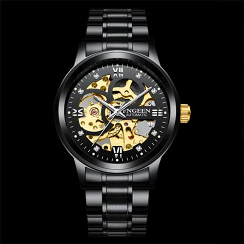 skeleton automatic mechanical watch gold belt skeleton automatic watch gold belt