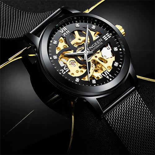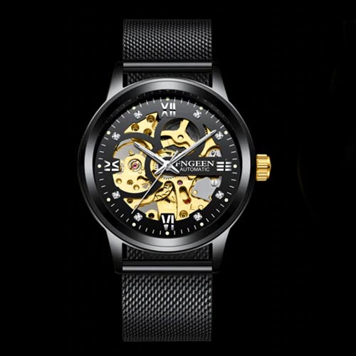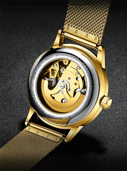 skeleton automatic mechanical watch gold net skeleton automatic watch gold belt