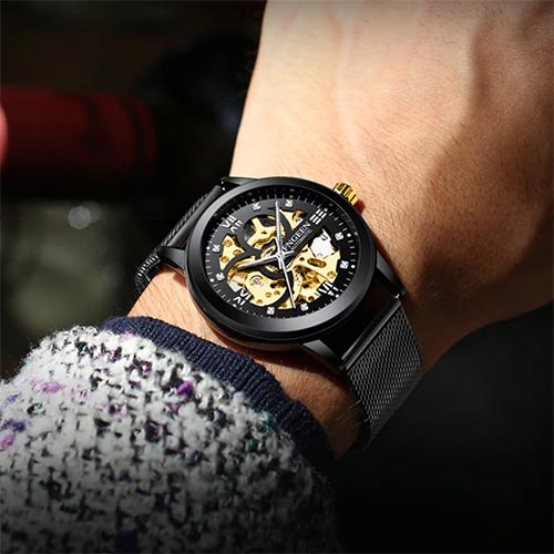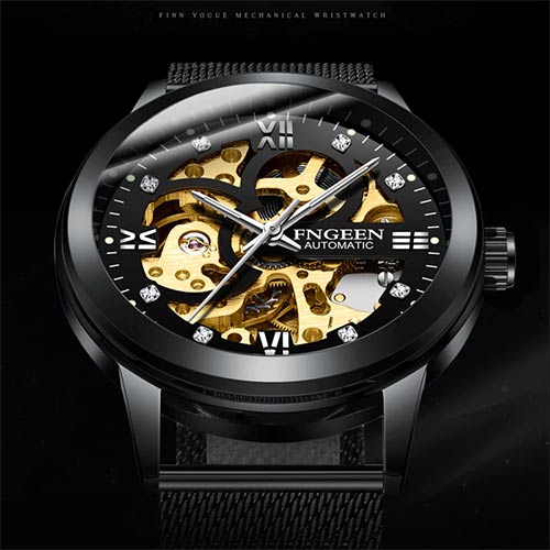 skeleton automatic mechanical watch black net skeleton automatic watch black net