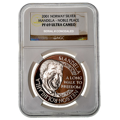 2001 Norway Nelson Mandela Nobel Peace Medal Silver PF69 graded and authenticated by NGC