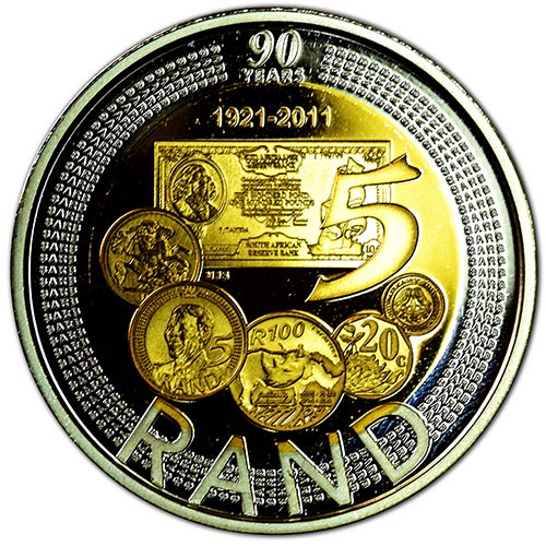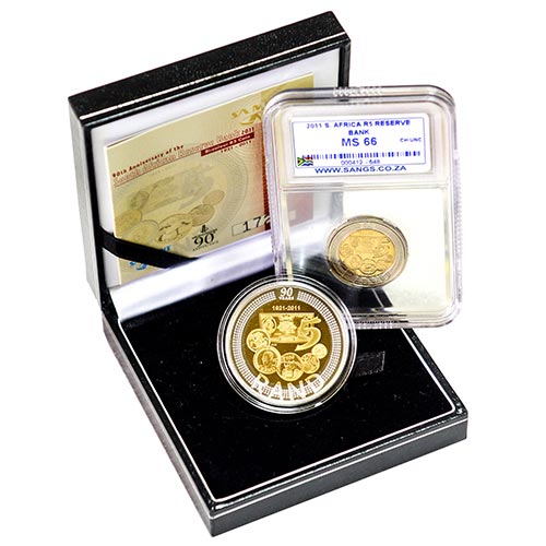33.626g Sterling Silver 38.725mm with 24k gold plating commemorating the 90th anniversary of The South African Reserve Bank 1921-2011.