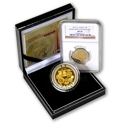 Includes the 2011 bi-metal R5 nickel coin version in uncirculated SANGS graded MS66.