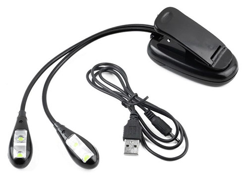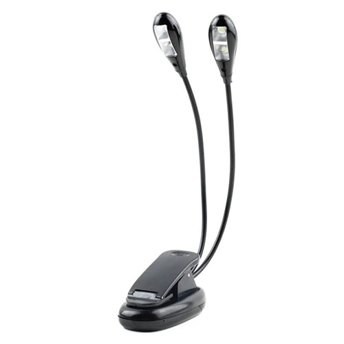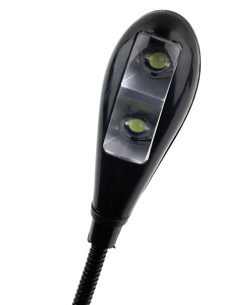 Features: 2 Arms 4 LEDs Flexible Lamp Ideal for Pianos, Music Stands, Book reading, Schools, Dark Clubs, notebook or laptop, and now MICROPHOTOGRAPHY etc. With 2 fully adjustable/ flexible goosenecks Powered by 3 AAA Batteries (Not included) or USB Power Cable Clip-on or Freestanding Four white LED lights