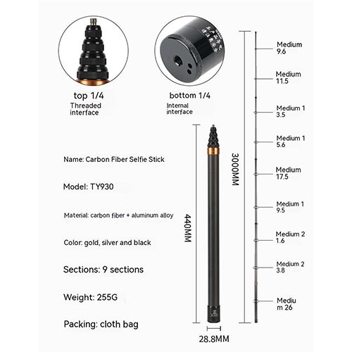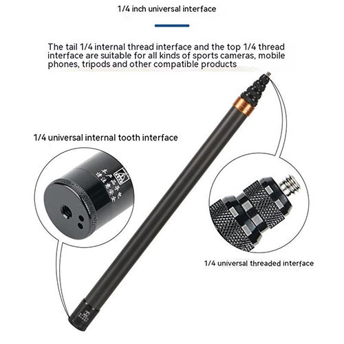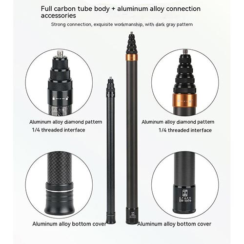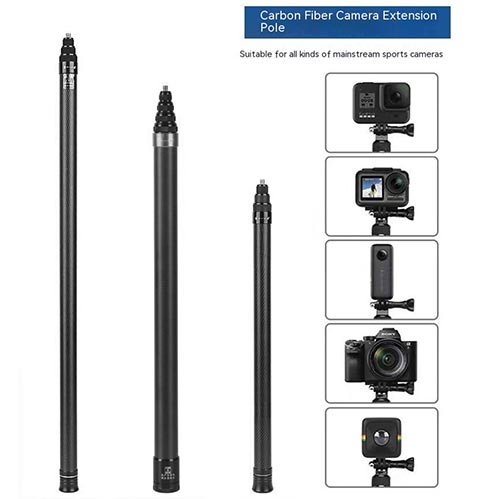 44cm to 3m Extended selfie stick (carbon fiber) for 360 invisible photo and video; dji; gopro; insta360 - silver colour only