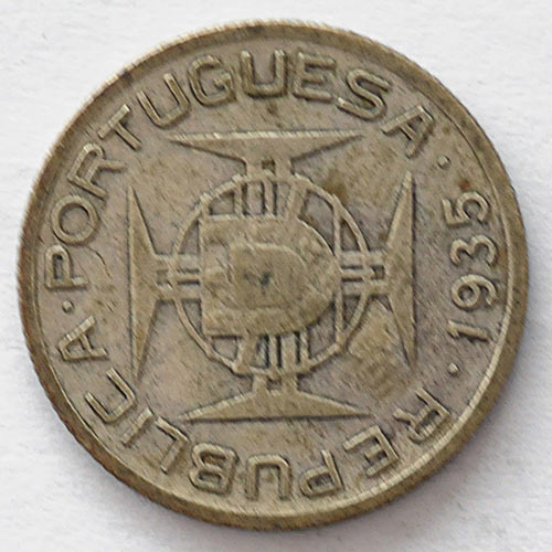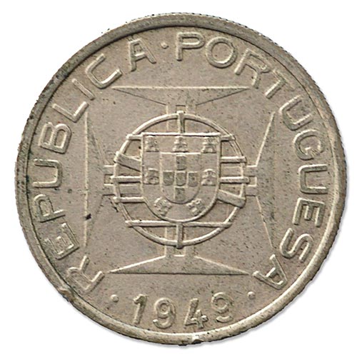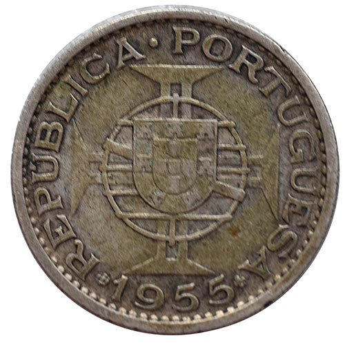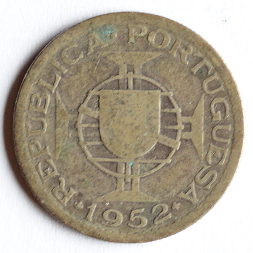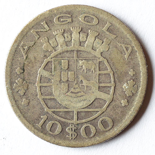 1952 Angola 10 escudos 5g 72% silver. mintage: 2,032,000