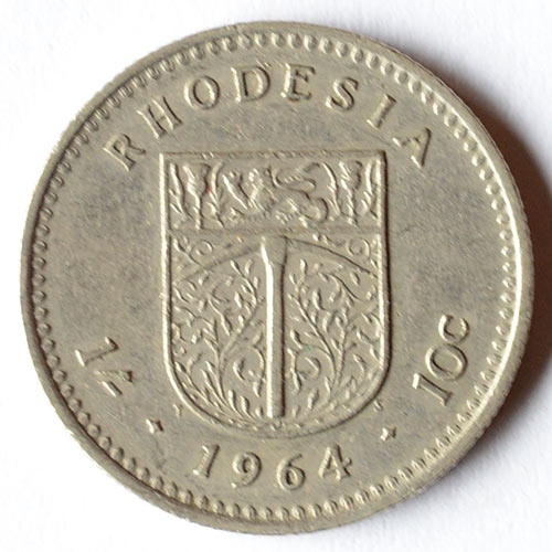 1964 Rhodesia 10c Elizabeth II 2nd portrait. Copper-nickel Weight 5.7g Diameter 23.5mm Thickness 1.76mm