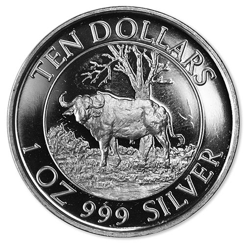 1996 Zimbabwe Cape Buffalo and Motopo Hills 1oz 999 pure silver