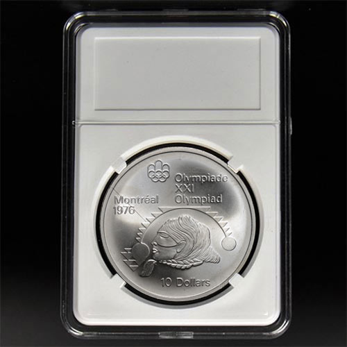 1975 Canada 10 dollars 1976 Olympics Women's Shot put 48,6g sterling silver. 45mm diameter, 3.2mm thick.