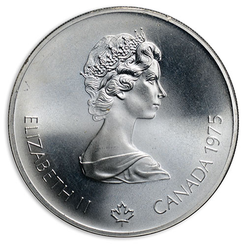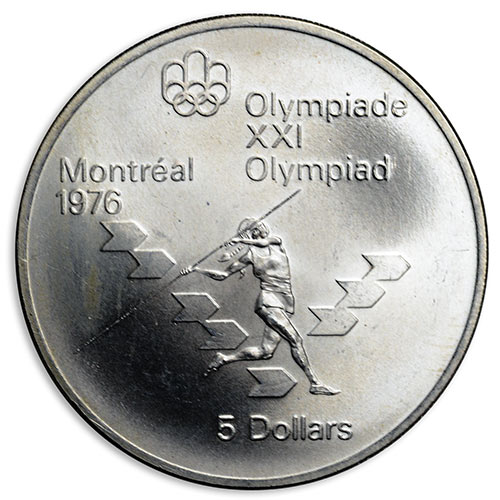 1975 Canada 5 dollars 1976 Olympics Women's Javelin 24,3g sterling silver. 38mm 2,4mm thick.