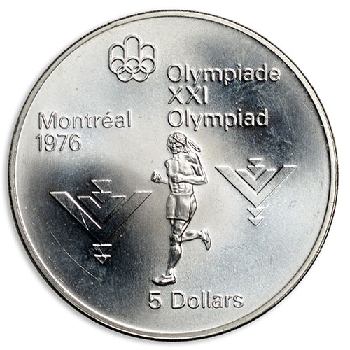 1975 Canada 5 dollars 1976 Olympics Women's Marathon Runner 24,3g sterling silver. 38mm 2,4mm thick.