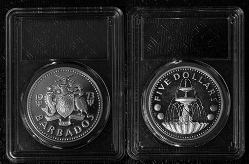 1973 Barbados Elizabeth II $5 silver