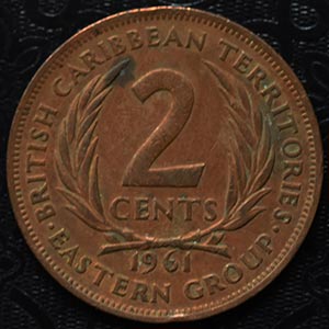 1961 British West Indies Eastern Caribbean States Elizabeth II 2 cents