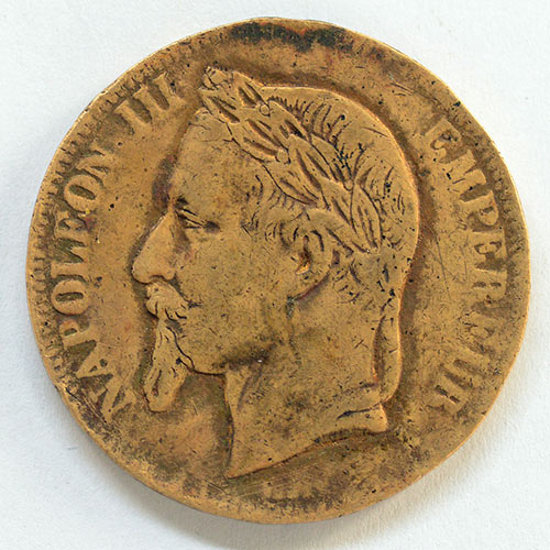 Bronze plated steel Weight 2.5g Diameter 18mm Thickness 1.4mm
