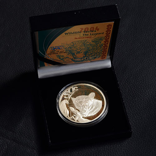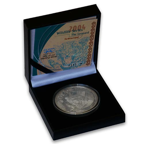 2004 Wildlife African Leopard Proof 50 cent 50mm 76.252g 2oz Sterling Silver.