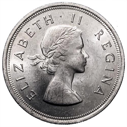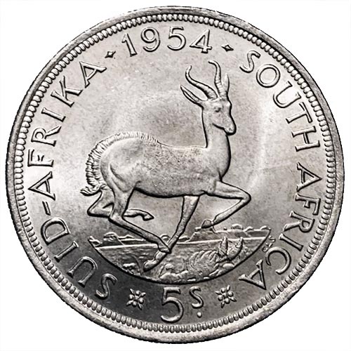 1954 South Africa 5 5hilling silver crown Elizabeth II 1st portrait