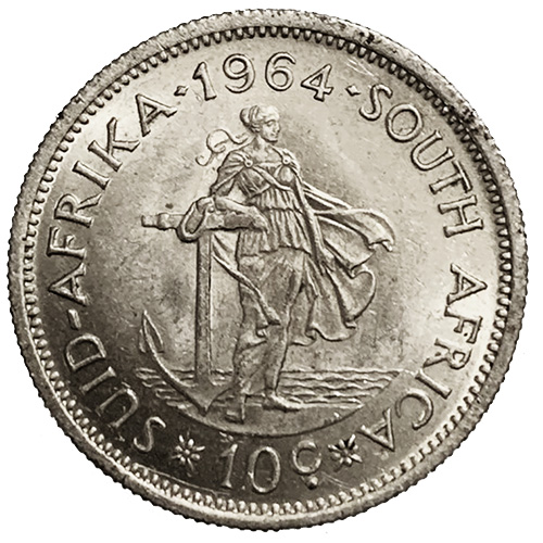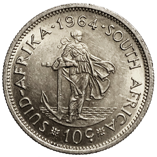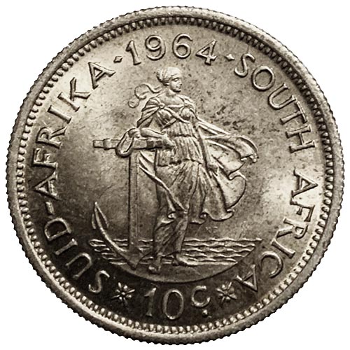 1964 Union of South Africa 10c 1st decimal series 50% silver