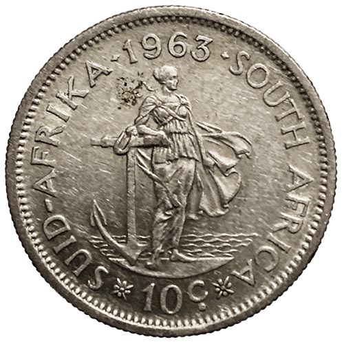 1963 Union of South Africa 10c 1st decimal series 50% silver